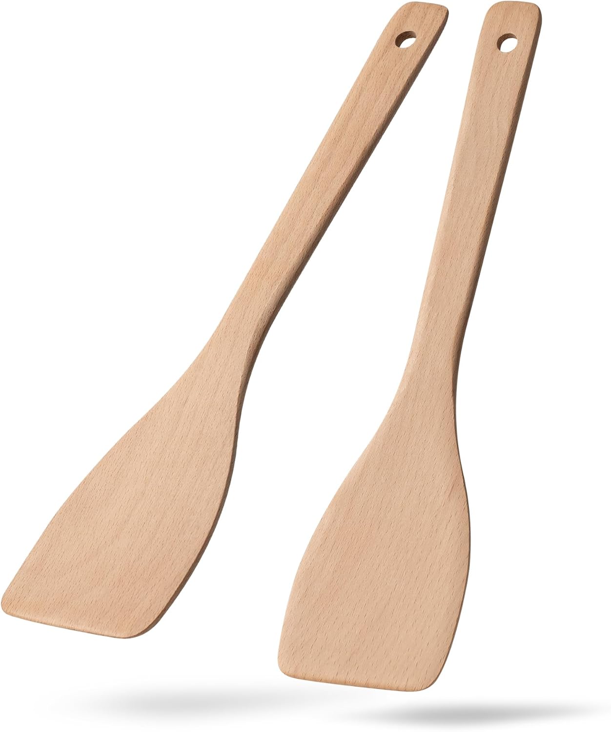 2PCS Wooden Spatulas for Cooking, 13inch Uncoated Beech Wood Turners for Frying, Non-Scratch Wood Flat Spurtle for Pan & Wok, Wooden Cooking Utensils for Non Stick Cookware, Long Handle Scraper